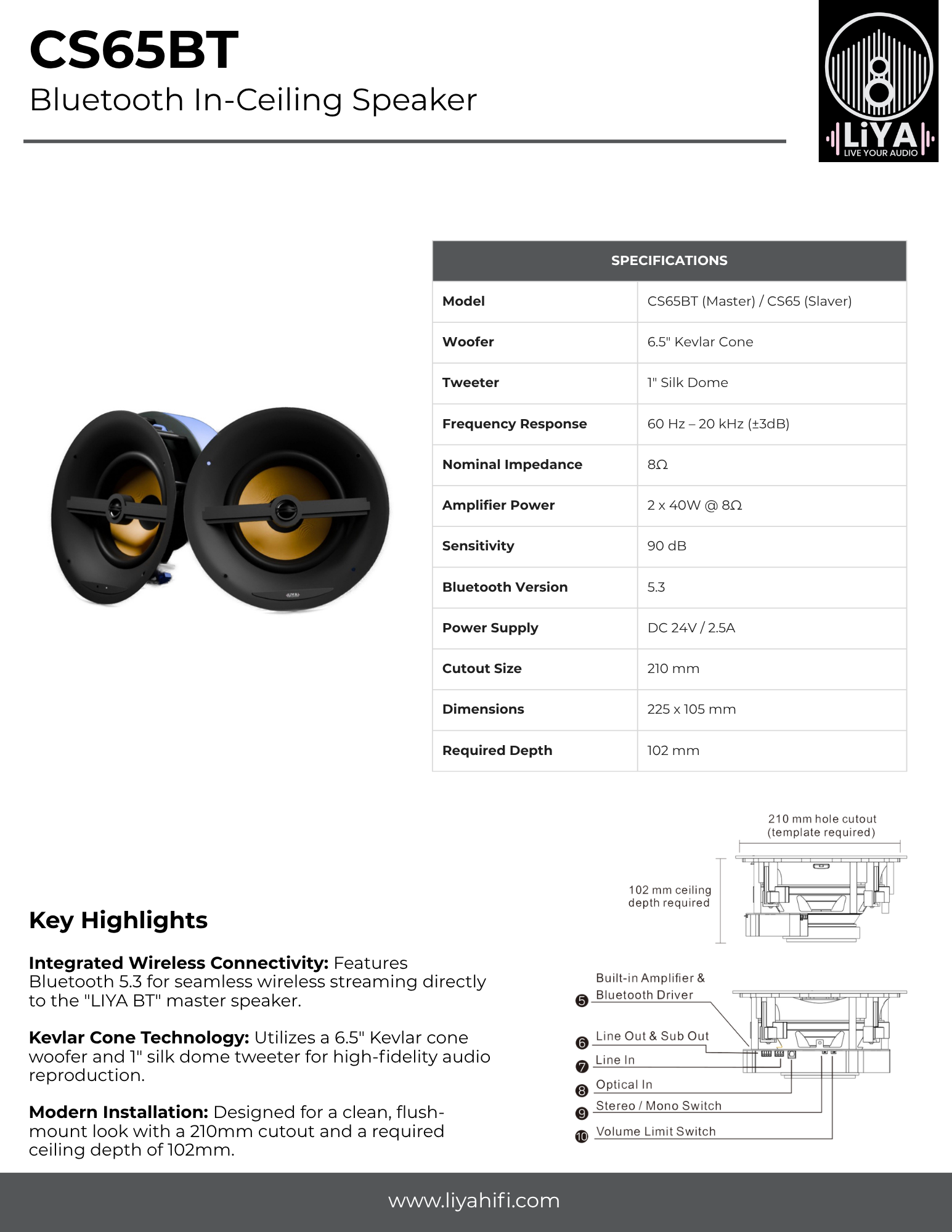 Integrated Wireless Connectivity: Features Bluetooth 5.3 for seamless wireless streaming directly to the “LIYA BT” master speaker.